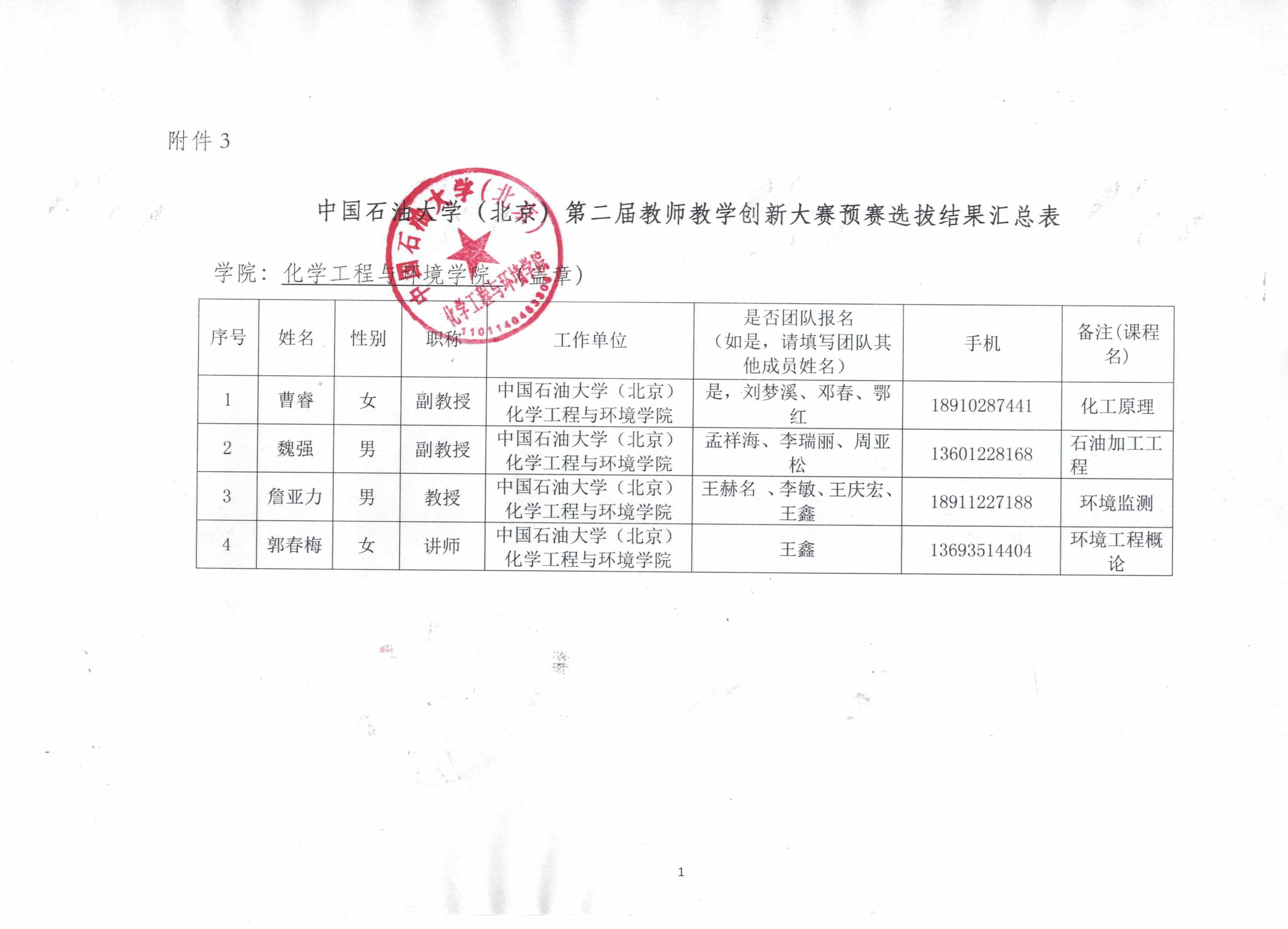 中国免费靠逼视频(北京)第二届教师教学创新大赛预赛选拔结果的公示