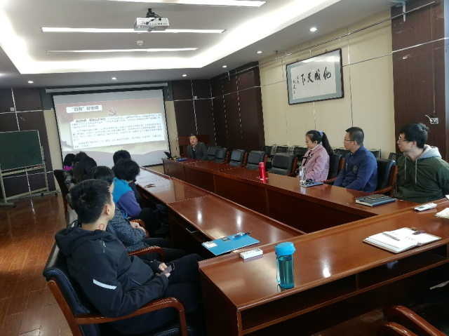 2019年10月29日上午,化学工程与环境学院党委书记孙学文结合“不忘初心、牢记使命”主题教育学习体会、学院领导班子专题调研成果交流会成果及“立德树人”大讨论的情况,为学院青年教师上了一堂“做新时代“四有”好老师,当好学生健康成长的指导者和引路人”的党课。