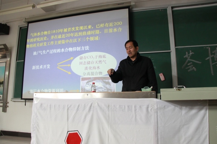 讲座开始前,郭老师首先与同学们亲切的聊着学习、考试的话题,讲座现场气氛十分融洽。讲座中,郭老师首先为同学们介绍了天然气水合物的基本概念,然后结合水合物的研究历史,以及当前水合物研究领域现状和研究过程中存在的难题,深刻分析了天然气水合物的未来发展和研究方向。讲座结束后,郭老师和同学们进行互动交流,并解答了同学们提出的问题。