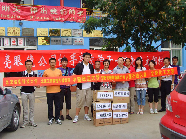 7月11日,化工学院学生社团联合会代表携手野亮眼镜店及其它四所高校走进太阳村,为村里的孤儿们送去学习用品和资助金,并与村长张淑琴及孩子们进行了一系列交流活动。