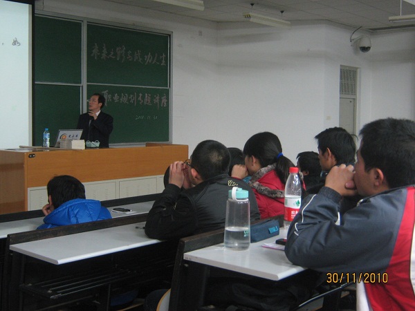 李廷海还通过幽默诙谐的语言、实实在在的实例,进行深刻的剖析,他将职业生涯规划的每一环节讲解的淋漓尽致,讲座结束时,李廷海送给同学的《我的梦想我的路》一书,并以“爱与智慧,共创未来”作为对同学们的忠告,认真解答了同学们的疑问,使同学们受到了很大的启发。