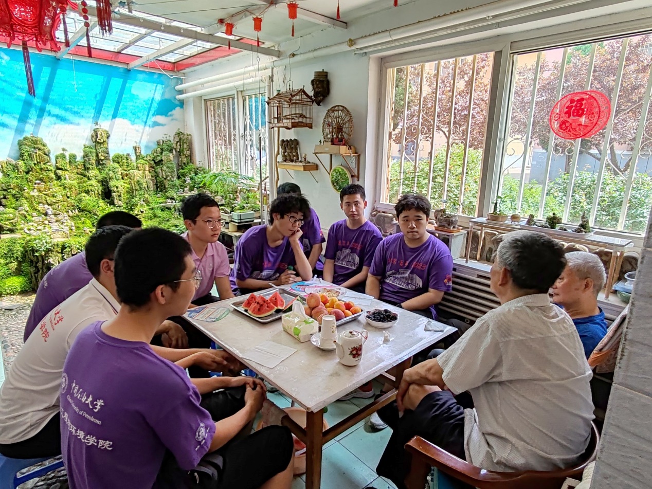 在“听往昔故事,感石油精神” 环节,实践团拜访退休石油工人,实践团一行了解了老一辈石油人贯彻铁人精神,在困苦环境中不懈奋斗,为祖国石油行业建设做出贡献,团队成员也对接过责任,在新时代让石油精神发扬光大有了自己的理解与体会。