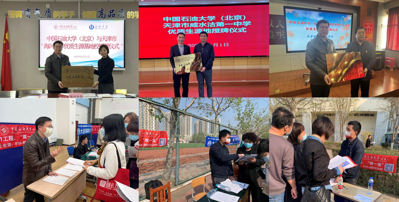 3月31日至4月1日,化工专业负责人孟祥海教授和能化专业负责人吴志杰教授代表学校赴天津市三所中学开展本科招生宣传,签署优质生源基地建设合作协议,并举行基地授牌仪式。此次本科招生宣传活动由天津日报社组织,天津大学、中国免费靠逼视频(北京)、北京科技大学等30多所高校参加。3月31日下午在天津市海河中学宣传,4月1日上午在天津市咸水沽第一中学宣传,4月1日下午在天津市第四十七中学宣传。此次招生宣传向天津市广大高中生和家长发放学校招生宣传材料,介绍学校人才培养特色与专业设置,解答学生和家长关心的填报志愿、专业选择、转专业、联合培养、就业情况、读研情况等疑问,让更多的学生和家长了解学校,提升了学生和家长对学校的认可度。
