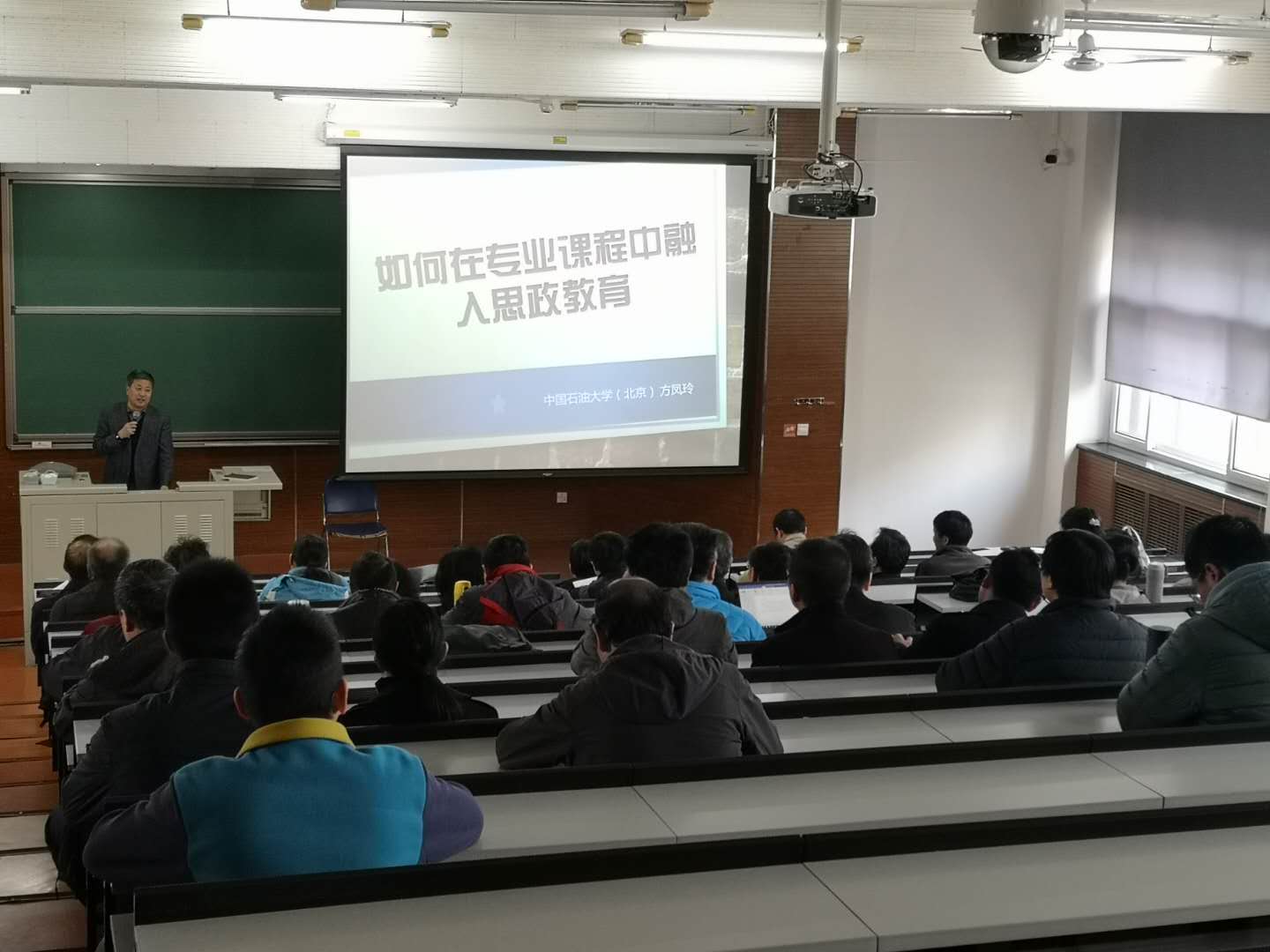 为深入学习贯彻习近平新时代中国特色社会主义思想和党的十九大精神,全面落实全国全市高校思想政治工作会议和教育大会精神,引导全体教师坚定理想信念、弘扬高尚师德、潜心立德树人,弘扬爱国奋斗精神,4月3日下午,化学工程与环境学院、外国语学院2019年青年教师中国特色社会主义理论培训班开班,两院近100名青年教师在二教参加了开班辅导会。马克思主义学院院长方凤玲教授做了题为“如何在专业课程中融入思政教育”的首场报告。化学工程与环境学院党委书记孙学文主持开班式并进行动员讲话。