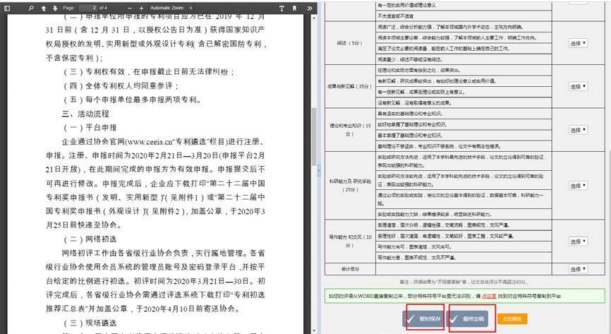 写好评语跟各项选项,点击“暂时保存”平台只是保存您当前的记录,不是最终定稿;点击“最终定搞”后将不可能修改评书,如下图所示: