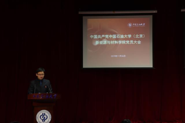会上,蒲俊霖同志代表学院党委作工作报告。报告的题目是“不忘初心跟党走、牢记使命谱新篇,为建特色学院、育时代新人而努力奋斗”。报告指出,自2018年11月26日成立以来,在学校党政正确领导和亲切关怀下,学院党委把加强和改进党对学院工作的领导置于首要位置,团结带领全院师生员工和党员干部,勤勉工作,求真务实,推动学院各项工作步入正轨。报告从国际、国内和学院内部详细分析了当前和今后一个时期学院面临的发展形势,提出到2030年要把学院建设成为新能源新材料学科领域国内知名的高水平研究型学院,并从人才培养、学科建设、师资队伍建设、党的建设等四个方面明确了下一步工作任务。报告号召学院广大党员干部和师生员工要以高度的责任感和使命感,凝心聚力,统一思想,以“功成不必在我”的精神境界和“功成必定有我”的历史担当,坚持问题导向,增强改革定力,扭住目标不动摇,一张蓝图绘到底,确保学院朝着既定目标快速前进,努力为学校实现建设石油石化学科领域世界一流研究型大学的宏伟目标作出更大贡献!