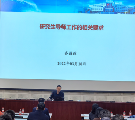 齐昌政从导师基本情况、导师管理文件解读、导师队伍建设重点工作等三个方面,向大家做了详细的介绍。让大家对导师岗位管理文件、导师立德树人文件、导师选聘文件等有了更加清晰和全面的了解,其中的“八要十不得”、“十要十不准”、“红线”等关键词给教职工留下了深刻印象。