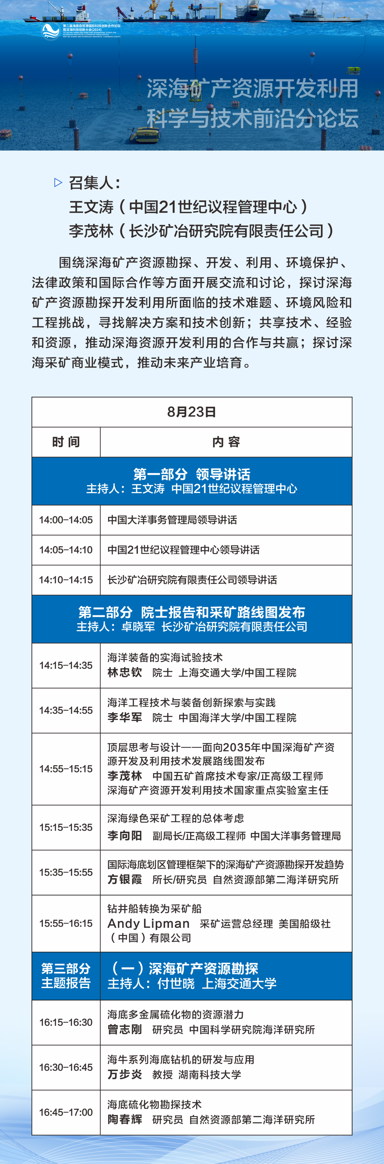 一、深海矿产资源开发利用科学与技术前沿分论坛