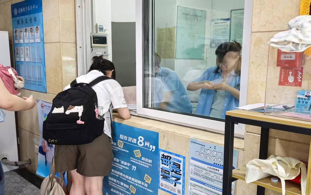 同学们在各自公寓楼下的宿舍管理处完成登记,领取钥匙和遥控器等宿舍用品。