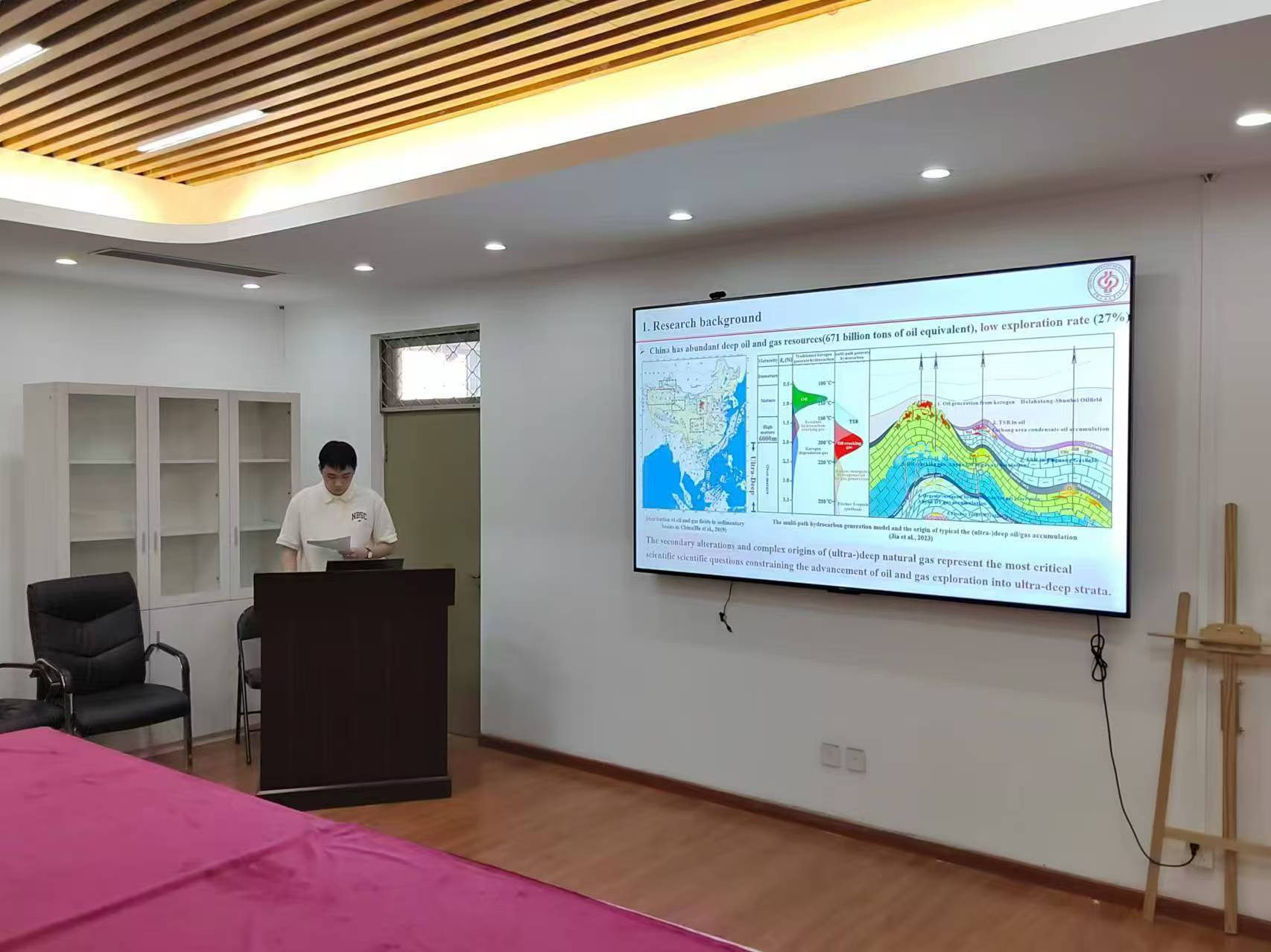 张子羽作了题为“Differential natural gas accumulation mechanisms in multiple (ultra-)deeply-buried marine strata” 的学术报告,介绍了(超)深层相地层中天然气成藏机制。