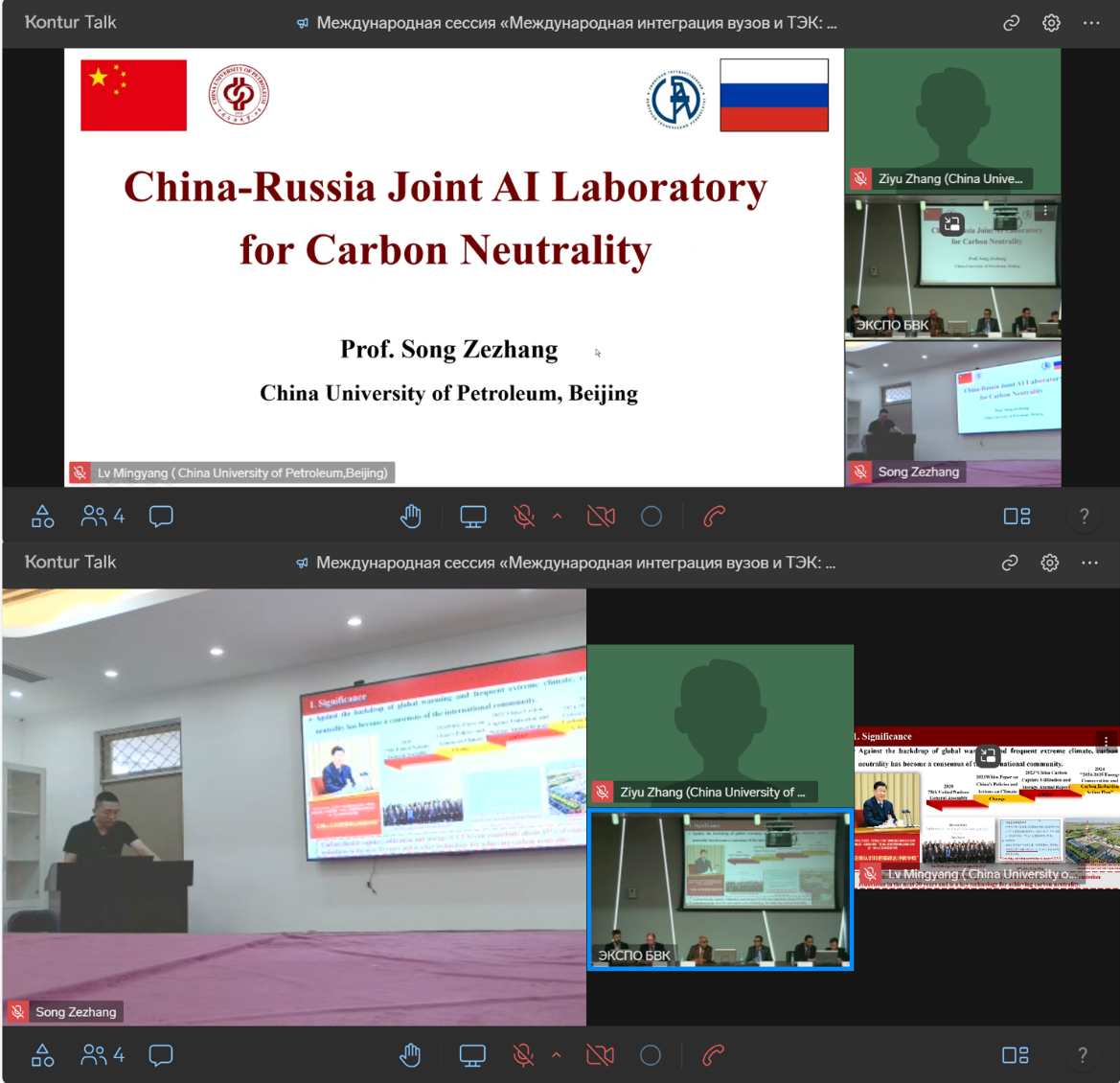 在圆桌会议“International Integration of Universities and Fuel & Energy Complex: Paths to Sustainable Development”上,宋泽章做了题为“China-Russia Joint AI Laboratory for Carbon Neutrality”的特邀报告,展示了由中国免费靠逼视频(北京)与乌法石油技术大学于2023年10月成立的中俄碳中和AI联合实验室的建设进展以及未来规划。共同参加圆桌会议的还有来自俄罗斯、巴勒斯坦、阿尔及利亚、哈萨克斯坦、鞑靼斯坦共和国等5个国家6所高校的校长和院长,巴勒斯坦教育部总干事。