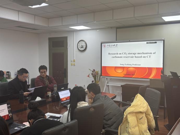 宋泽章副院长作了关于碳酸盐岩储集层中的二氧化碳地质封存的报告
