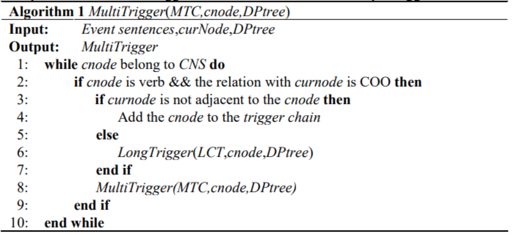 针对以上3个规则,可得出触发词链生成算法,如算法1所示。
