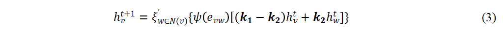 在本文中,CMPNN框架中节点嵌入的更新过程表述为式(4):