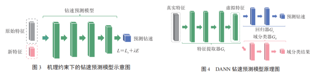 DANN模型由特征提取器、回归器和域分类器组成,分别用于提取特征、进行预测和识别特征域,以实现跨域学习。模型训练采用复合损失函数,融合钻速预测误差和域分类误差。钻速预测误差通过比较实际与预测钻速来衡量性能,而损失权重的调整则用于平衡特征提取与域分类的训练。