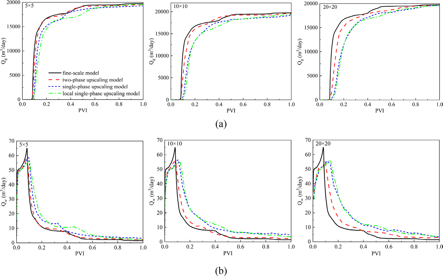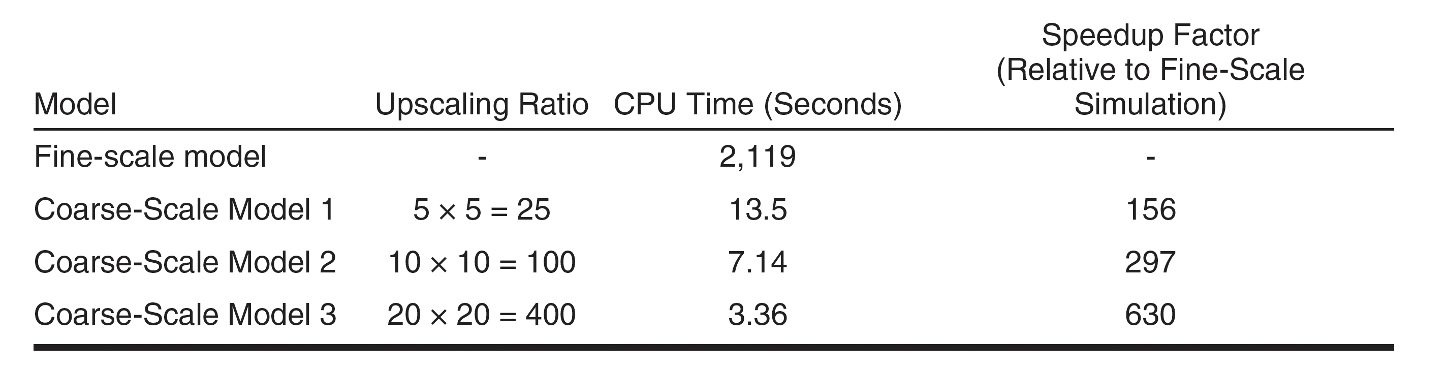 本文基于CO2注入咸水层的全物理模型,围绕井指数、渗透率、毛管力曲线和相对渗透率曲线开展尺度升级研究,形成了一套针对CO2注入咸水层全物理模型的全局尺度升级算法。该算法以信息化建模技术为支撑,能够准确捕捉CO2注入咸水层过程中的多组分多相渗流特征,将细尺度地质模型准确地转换成粗尺度数值模拟模型,算法精确度明显高于商业软件方案。通过尺度升级,粗尺度模型的数值模拟计算加速156–630倍,实现了显著的加速比。