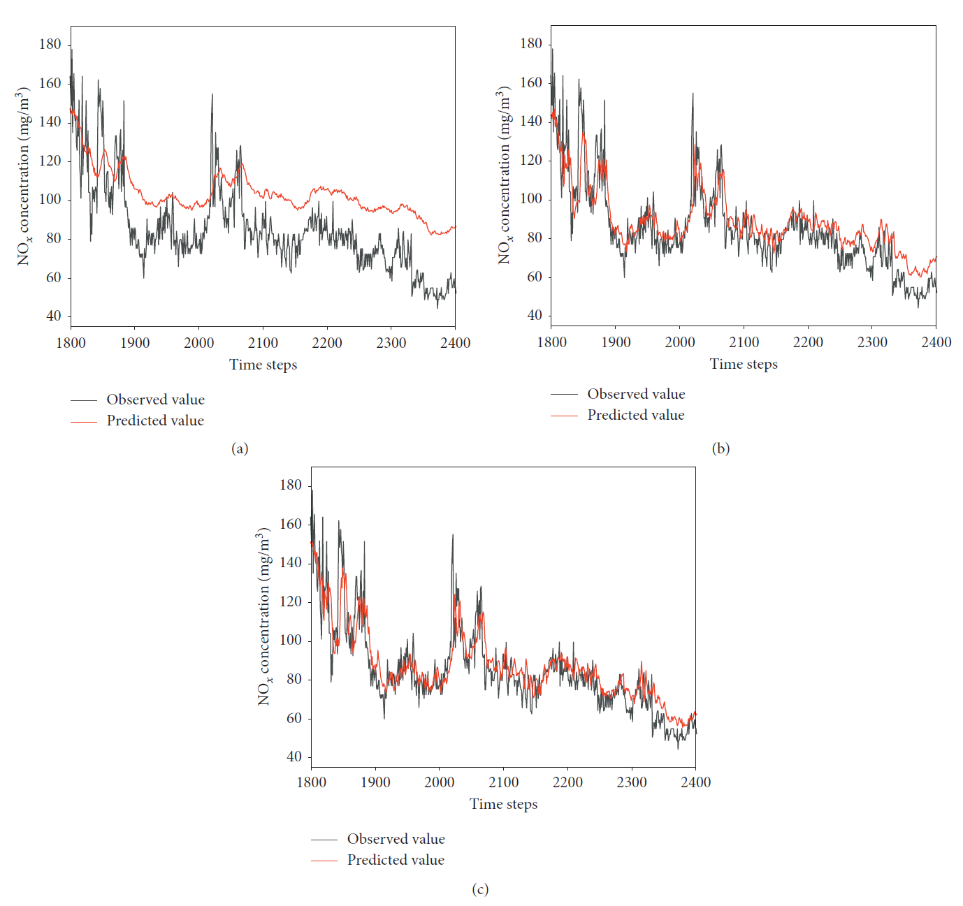 图5 不同网络的预测结果((a) CNN的预测结果;(b) LSTM神经网络的预测结果;(c) CNN-LSTM神经网络的预测结果)