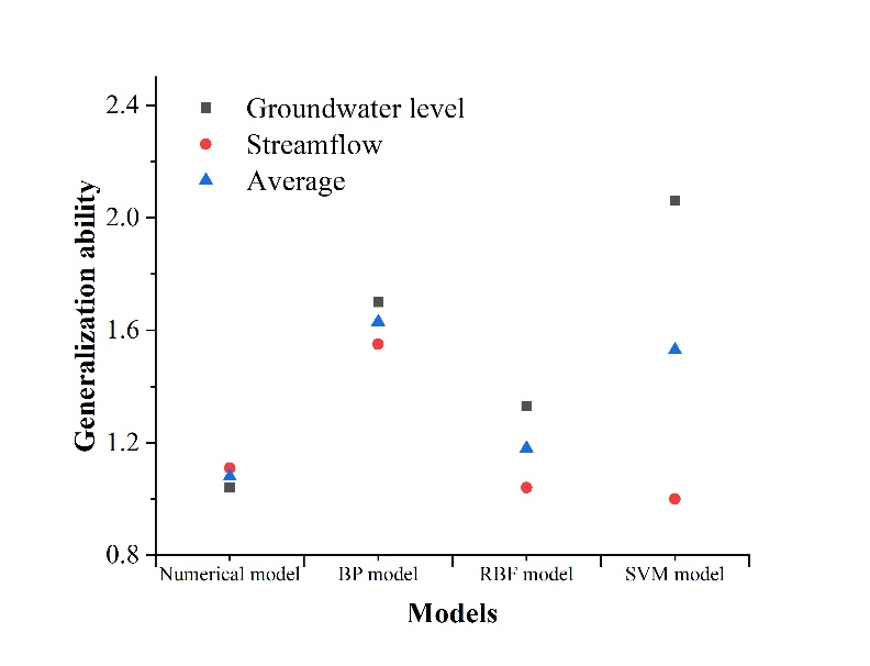 2. 方法介绍。分别采用机器学习模型与数值模型构建黑河流域中游地下水系统模型。机器学习方法选择多层感知机(Multi-layer perceptron)、径向基网络(Radial basis function network)与支持向量机(Support vector machine)等典型方法;数值模拟则选择MODFLOW(Modular Three-dimensional Finite-difference Ground-water Flow Model)构建地下水系统模型。