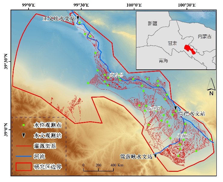 图1. (a) 黑河流域中游;(b) 地下水系统循环过程