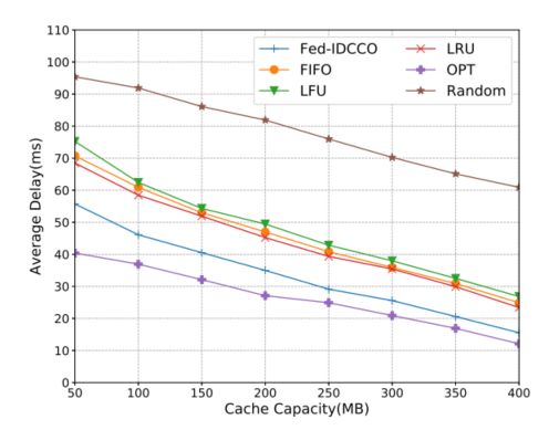 实验结果表明,与几种基线算法相比,本文提出的Fed-IDCCO算法能够有效地降低动态网络场景下的平均任务处理延迟,最大化无人机缓存命中率,同时与集中式算法相比,加快了DRL模型的收敛速度。