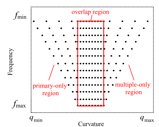 即,曲率范围和采样间隔均应与频率成反比,如图1(a)点状区域所示。