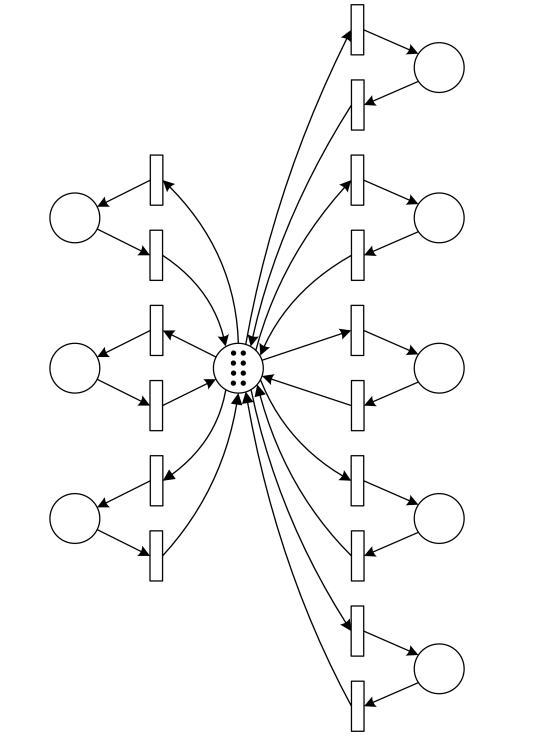 利用边缘计算的体系结构构建的计算机系统由两个主要层组成,即边缘层和云层。在每个层中,有多个虚拟服务器实现不同的功能来满足用户的需求。 在这一部分中,我们应用随机Petri网(SPN)模型来制定这两个层,并提出了一种服务组合的模型聚合方法。
