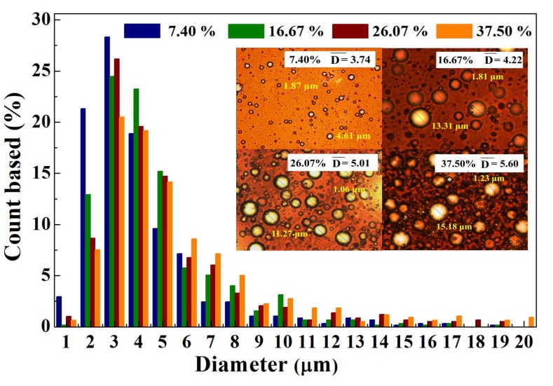 同时借助显微观测手段对W/O型乳状液内部的液滴分布特征进行探析,查明含水率对其液滴分布函数的影响,基于物理角度解释含水率对其阻抗性质的影响规律。