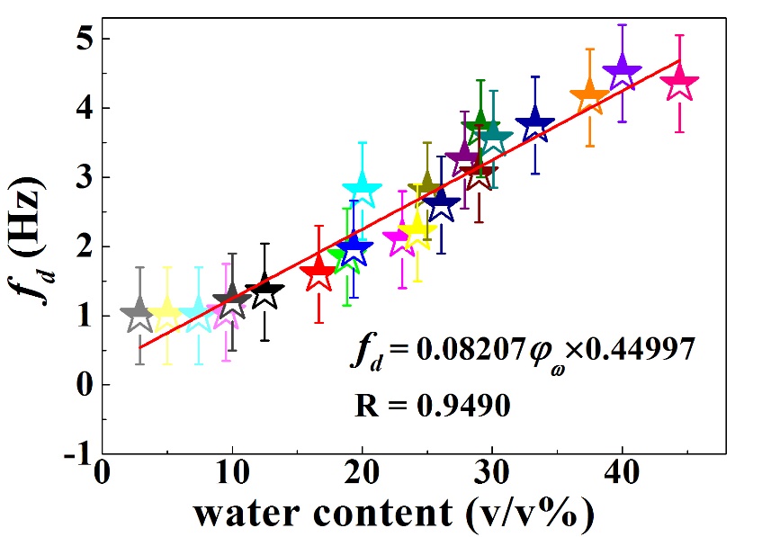 图3 乳状液扩散频率fd随含水率的变化趋势