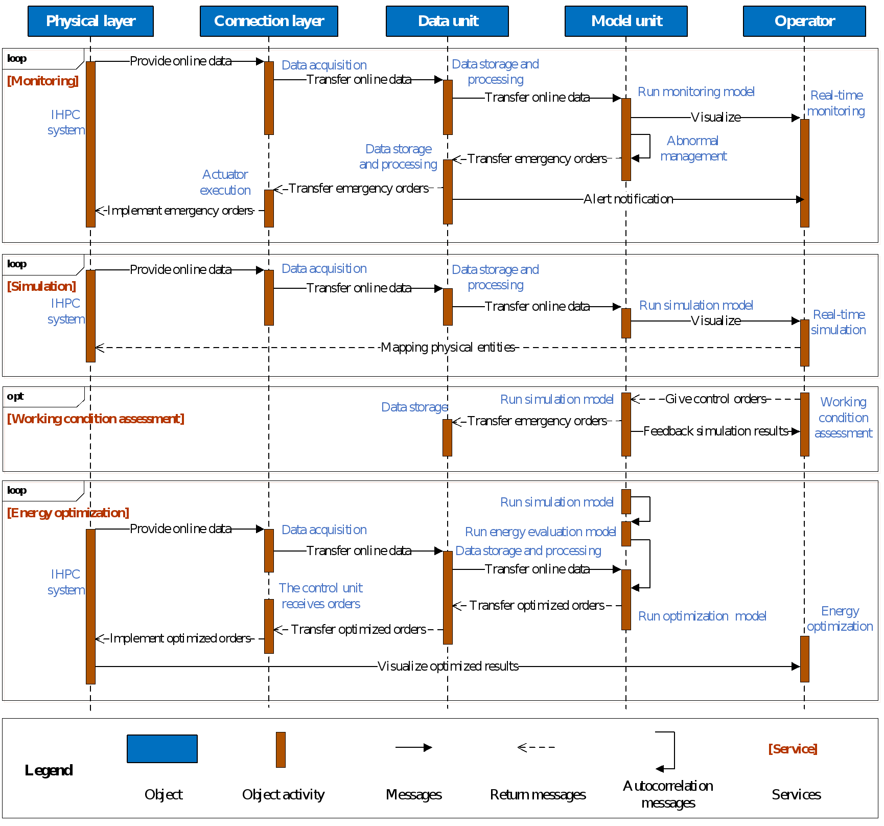 传统的数据中心冷却系统能耗管理(ECM)方法缺乏对实时信息和自动反馈控制的集成,导致系统运行风险难以诊断,节能潜力难以挖掘。因此,提出了一种数字孪生驱动的冷却系统能耗管理方法。首先,建立了分层数字孪生架构,以指导物理系统与数字孪生之间的无缝集成和实时交互;其次,开发了监测、仿真、能耗评估与优化等数字孪生模型,以驱动相应的数字孪生服务;最后,在某数据中心的集成热管冷却(IHPC)系统中对该方法进行了验证。结果表明,在满足冷却需求的前提下,该方法降低了系统23.63%的能耗。