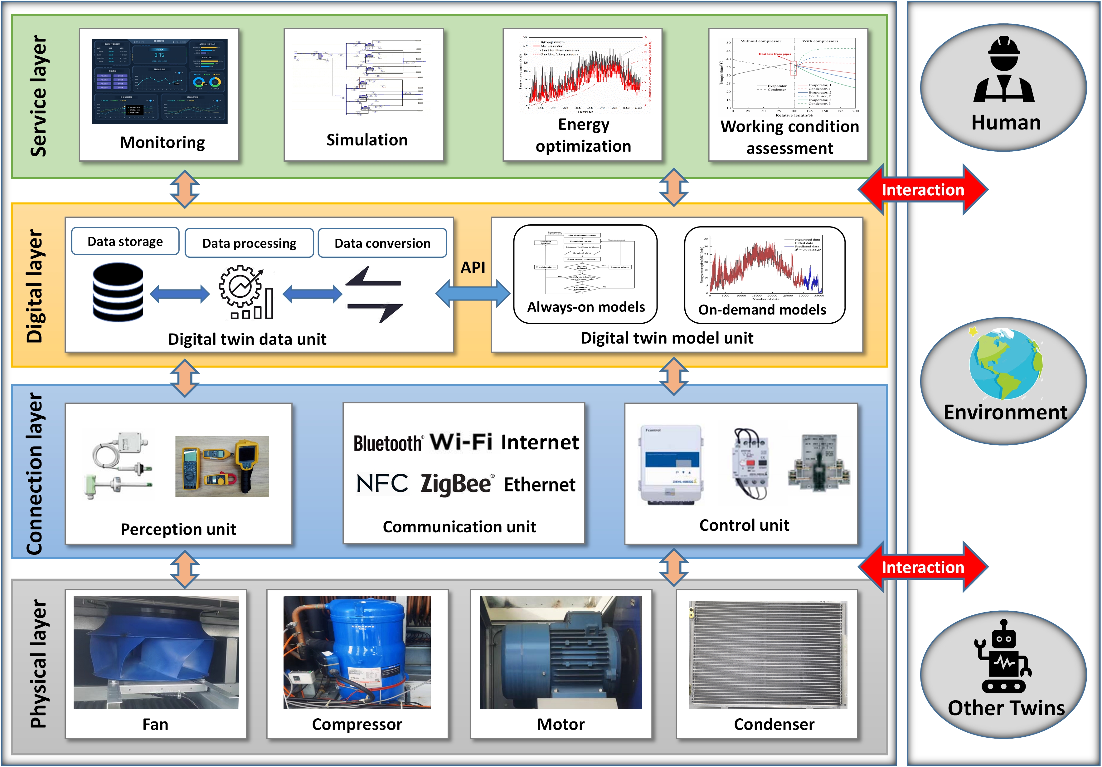 2.该数字孪生方法可在线获取冷却系统运行数据并动态模拟其工作流程,实现物理实体的实时映射,异常捕捉及能耗优化。