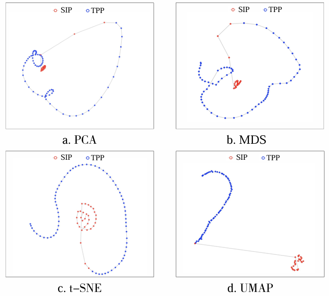 面向五种典型LSTM可视分析任务场景,文中通过多组对照实验定性和定量比较了四种DR技术的表现性能和效果。