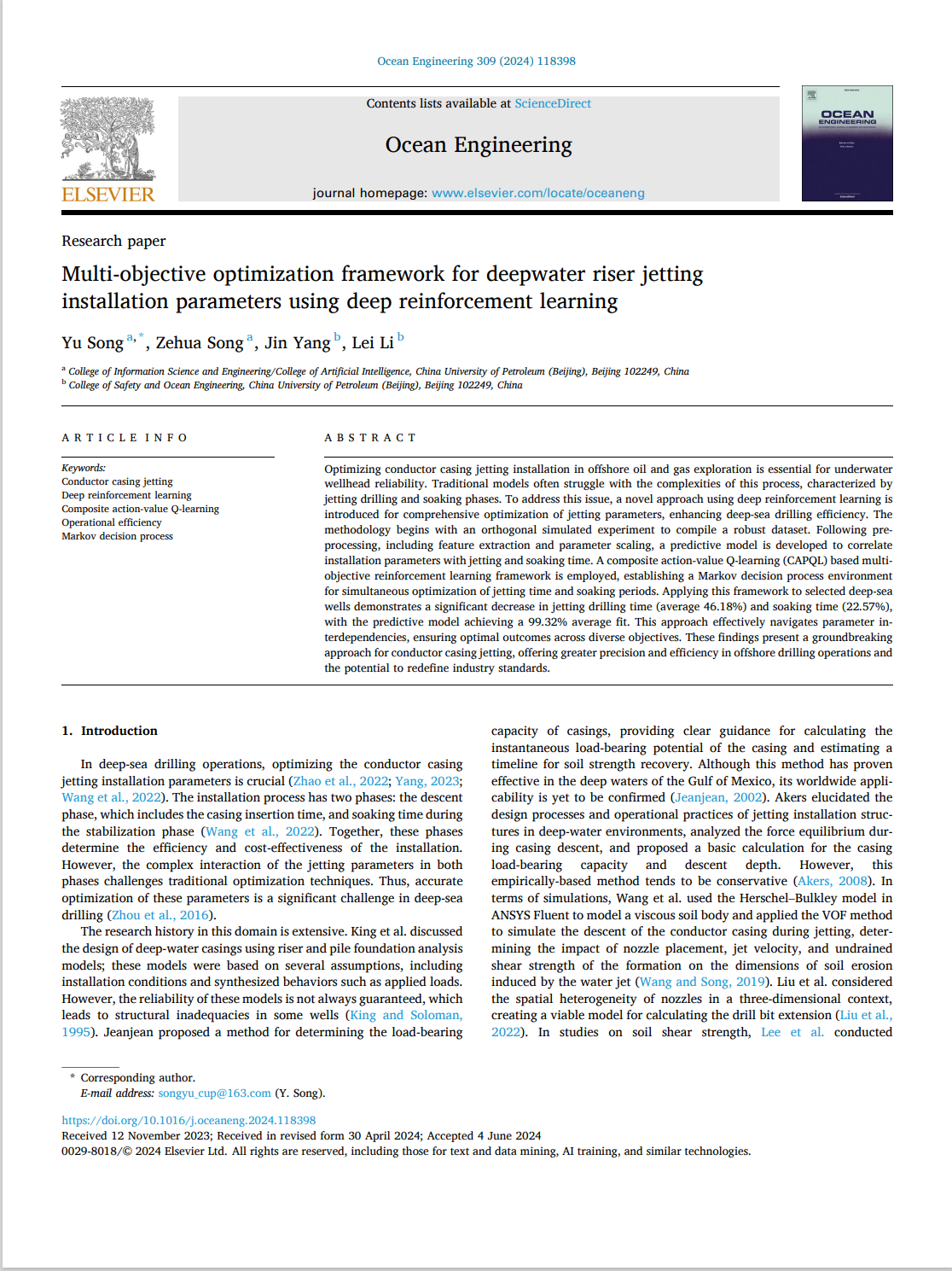 录用期刊/会议:Ocean Engineering (中科院SCI 2区,JCR Q1)