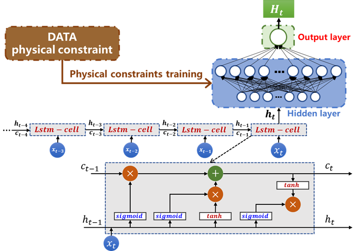 首先,通过分析ESP井监测数据之间的相关性,筛选了对ESP井健康状态有重要影响的主控参数,然后基于主成分分析方法,利用主控参数建立了健康指数计算模型;利用井筒能量守恒方程和健康指数计算公式对LSTM的网络模型中损失函数制定了物理约束(physical criterion-PC),并以此约束建立了PC-LSTM电泵健康预警模型。