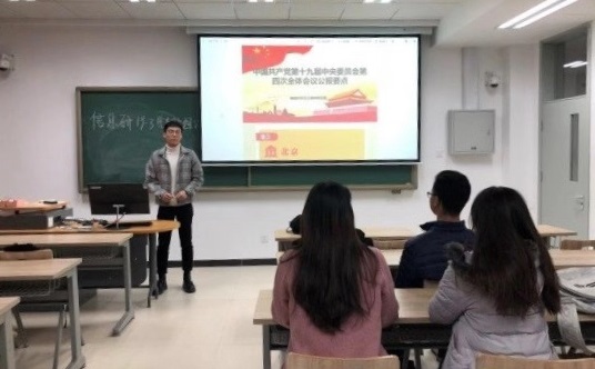 根据学校组织部和党委教师部的工作部署,11月14日,信息学院党委组织各教工党支部和学生党支部开展11月份组织生活暨全体教师理论学习活动,重点学习党的十九届四中全会精神。
