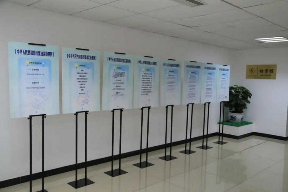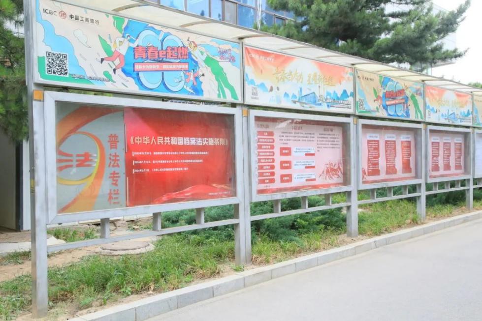 在校园宣传橱窗等区域设置宣传海报,张贴《中华人民共和国档案法实施条例》宣传内容,介绍实施条例的制定意义、出台目的、框架结构及重点规定等内容,向师生宣传普及档案法律法规。