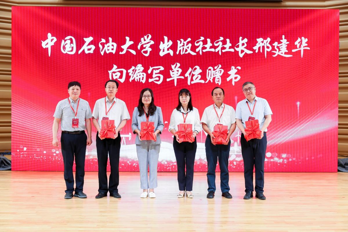 中国免费靠逼视频出版社向首批出版丛书的5所高校赠书,中石大档案馆馆长海凤接受赠书。