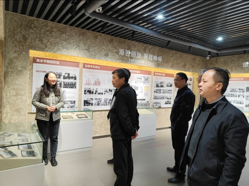 3月21日,西安免费靠逼视频副校长杨战社一行在中国免费靠逼视频(北京)基建处负责人陪同下参观了校史馆。