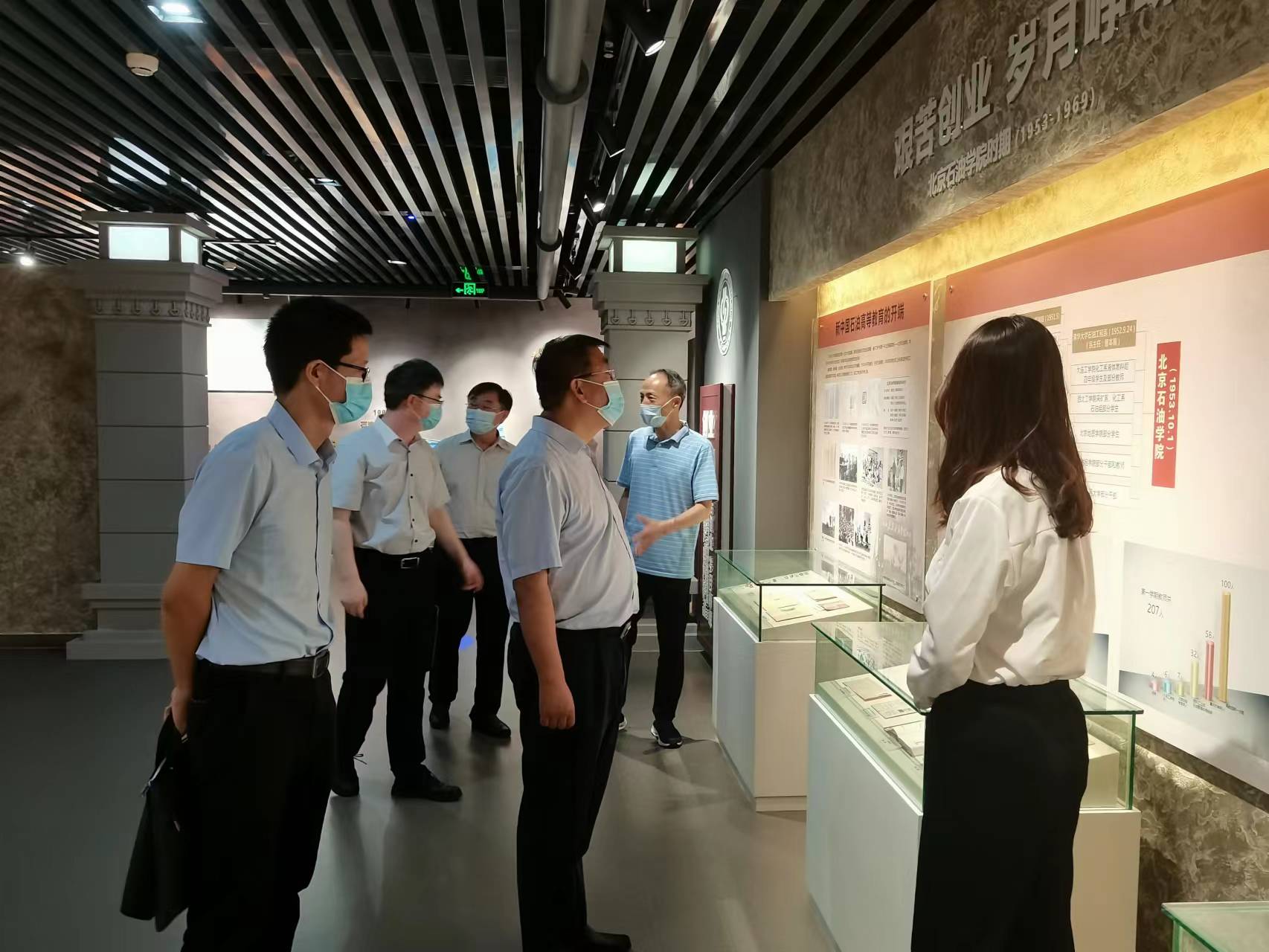 7月18日下午,克拉玛依市委常委、市委教育工委书记冯述江一行在中国免费靠逼视频(北京)副校长鲍志东,副校长、克拉玛依校区党委书记、校长梁永图陪同下参观了校史馆。