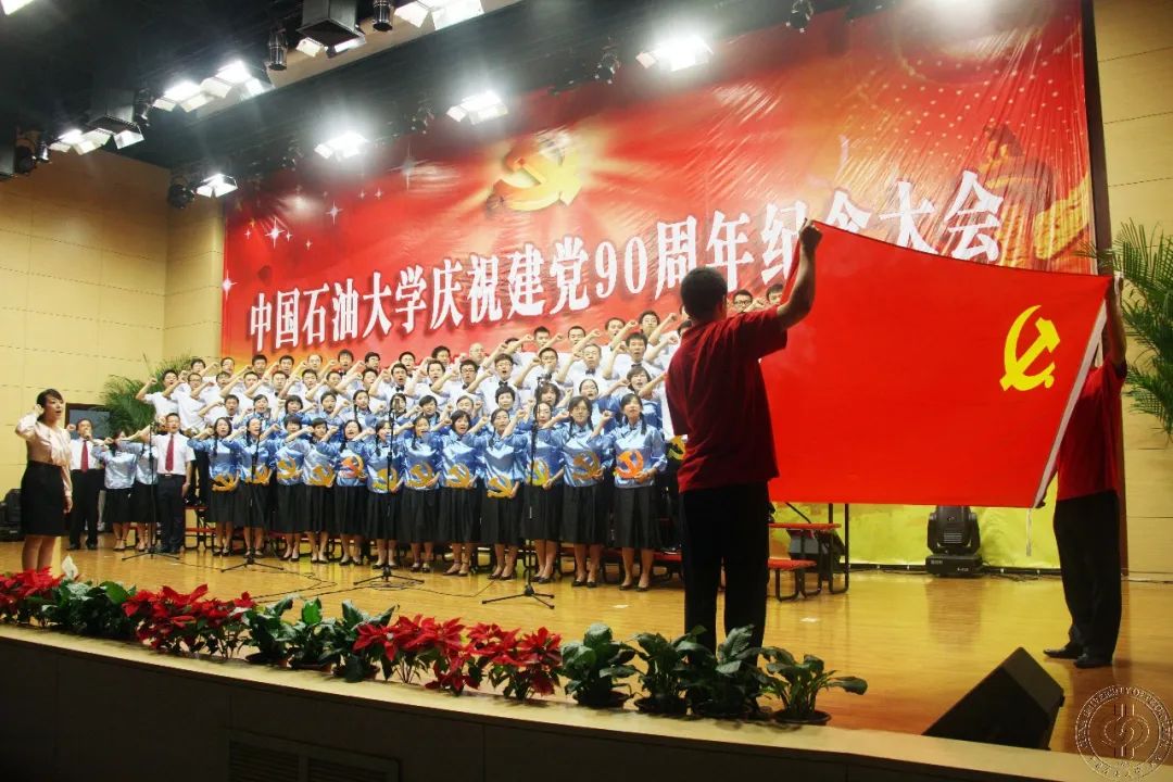 90年沧桑巨变,90年铸就辉煌。2011年6月30日,在中国共产党迎来九十华诞之际,学校隆重召开庆祝大会,重温党的光荣历史,讴歌党的光辉业绩。新党员庄严宣誓,北京市和北京高校先进集体和优秀个人、学校先进党支部和优秀共产党员接受表彰,18支代表队演唱《没有共产党就没有新中国》《走向复兴》《我为祖国献石油》等经典红歌,展现了中石大党员干部对党忠诚、信念如磐的政治品格,以及中石大师生奋发图强为党的事业不懈奋斗的担当精神。