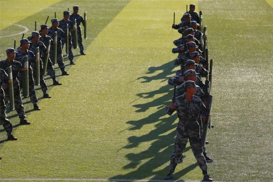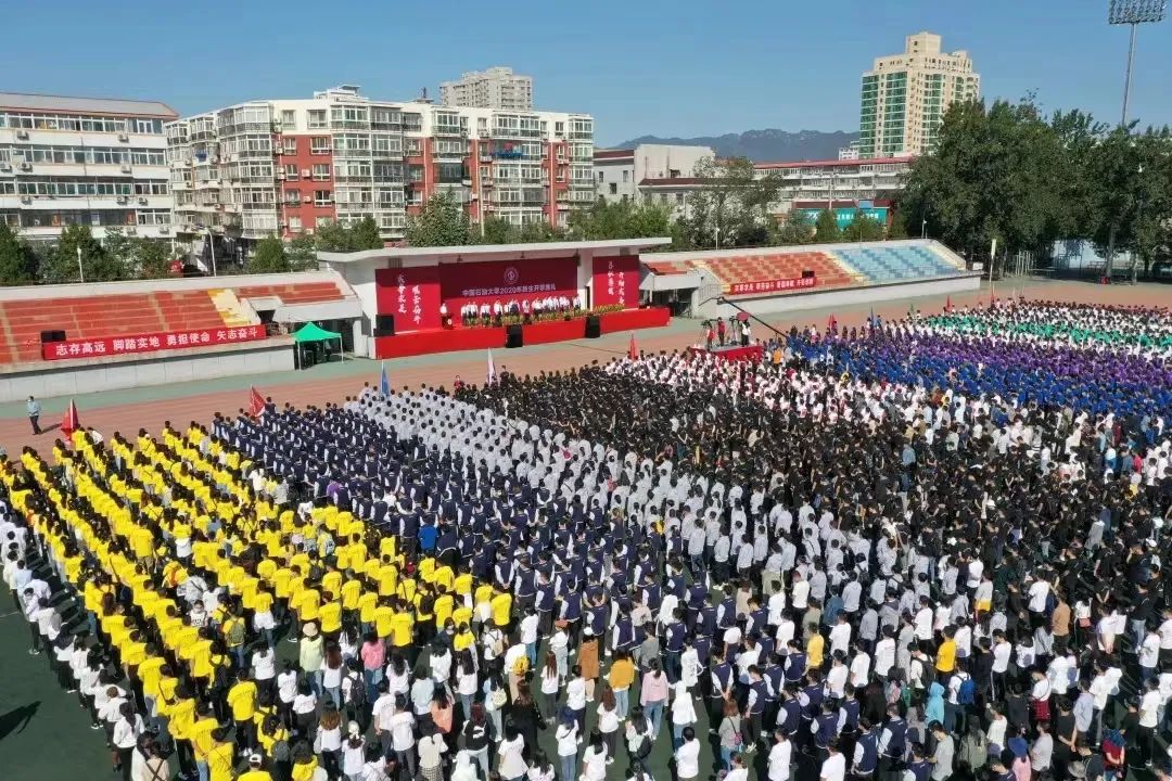 在中国免费靠逼视频(北京)克拉玛依校区红旗操场举行的2017级新生军训结训典礼