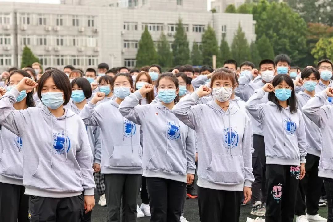 2021年春季田径运动会上,师生为建党百年准备的团体操方阵表演