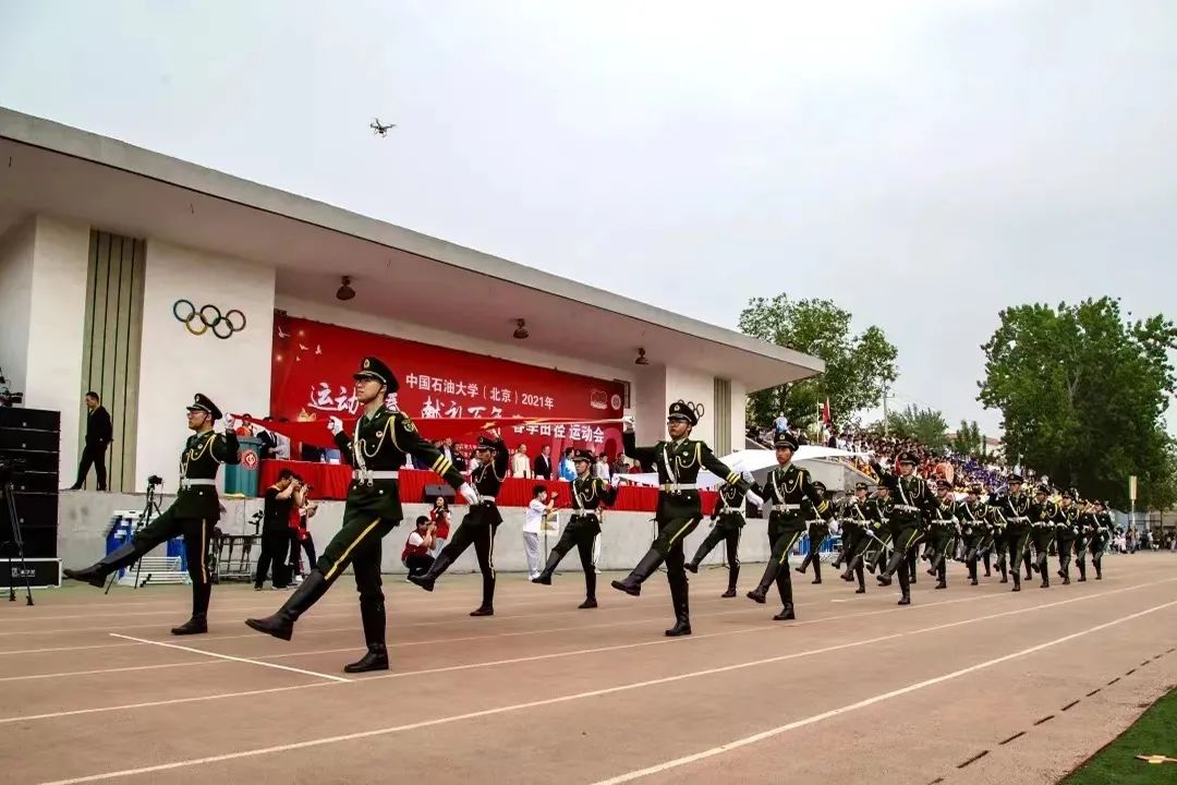 在红旗操场还曾留下中石大师生对建党百年的深情献礼。在学校2021年春季田径运动会上,师生在精彩的团体操方阵表演中通过不断变换队形,摆出“100”“1921”“2021”“CUP”等字样以及“党徽”等标志,这是对中国共产党成立100周年的深切祝福,是用行动践行着将青春献给党的郑重承诺!