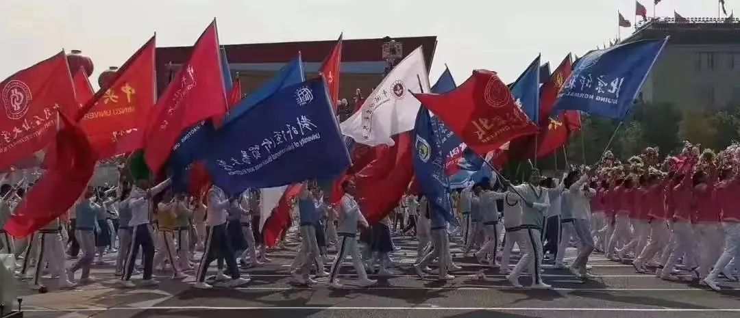 “立德树人”方阵中中国免费靠逼视频(北京)的校旗飘扬