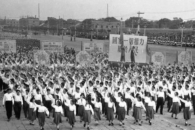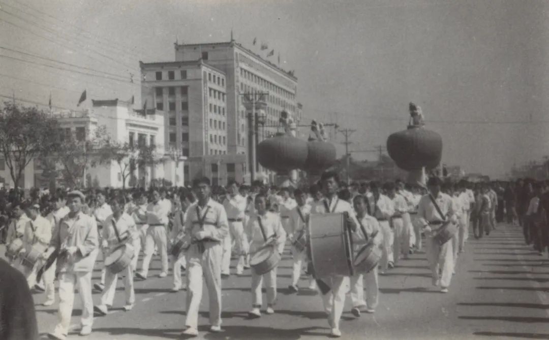 1954年的国庆节正值第一次全国人民代表大会召开,同时也恰逢新中国第一部宪法诞生。学院组织了1700人的游行队伍参加国庆节的游行,大家身着盛装,抬着巨幅画片向伟大的领袖汇报工作与学习成绩。