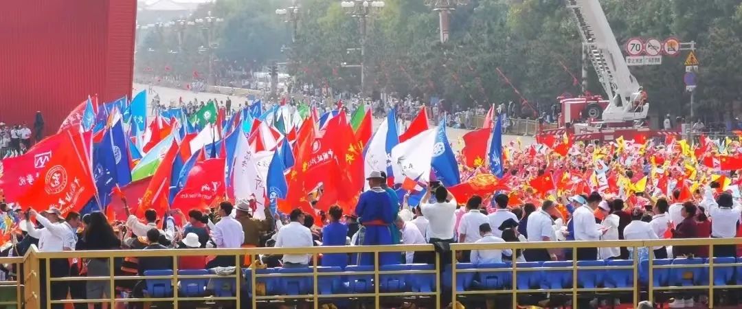 2019年10月1日,天安门广场举行盛大的群众游行,隆重庆祝新中国成立70周年。1032名中石大师生与1200名北京市国资委、市委农工委的代表共同组成群众游行8号方阵——“艰苦奋斗”方阵,踏着《社会主义好》的欢快旋律走过天安门广场,展现了新中国从一穷二白中艰难走来,在砥砺奋进中拼搏成长的壮志豪情。游行队员身穿石油工人、钢铁工人、纺织女工、农民等工装,高呼“祖国万岁”的祝福口号,振臂挥舞着红旗、麦穗,致敬勤劳,礼赞奋斗,祝福祖国风调雨顺国泰民安。