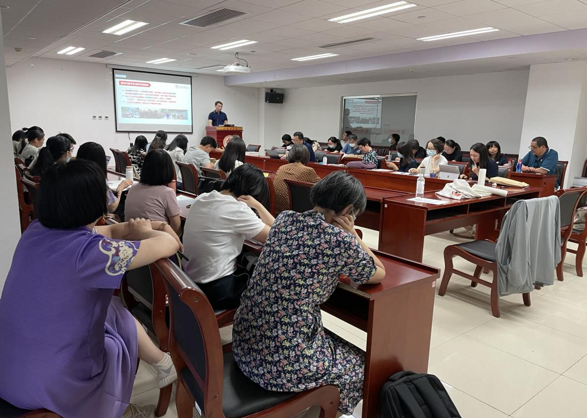 公共英语党支部教师连洁以“讲好中国故事——外研社演讲比赛破题分析”为题,深入讲解如何从思维出发,用英语讲述中国故事,实现故事逻辑、情感和信度的有机融合。