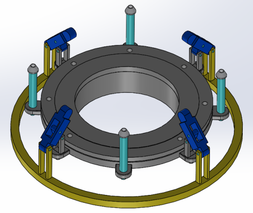 By connecting multiple pressure rods with the same sleeve ring, multiple fastening components can be operated simultaneously using single hydraulic cylinder action, which solves the problem that the action of fastening components is out of sync and automatically opens after fastening.Compared with the existing QCDC structure, it is more simplified and saves more space for the existence of hydraulic cylinders. And the synchronization control of the fastening mechanism becomes simpler.Under the condition of ensuring the same manufacturing process and installation of each fastening component, the problem of leakage caused by non-uniform stress in the preloading of conventional flange connection structure is solved.