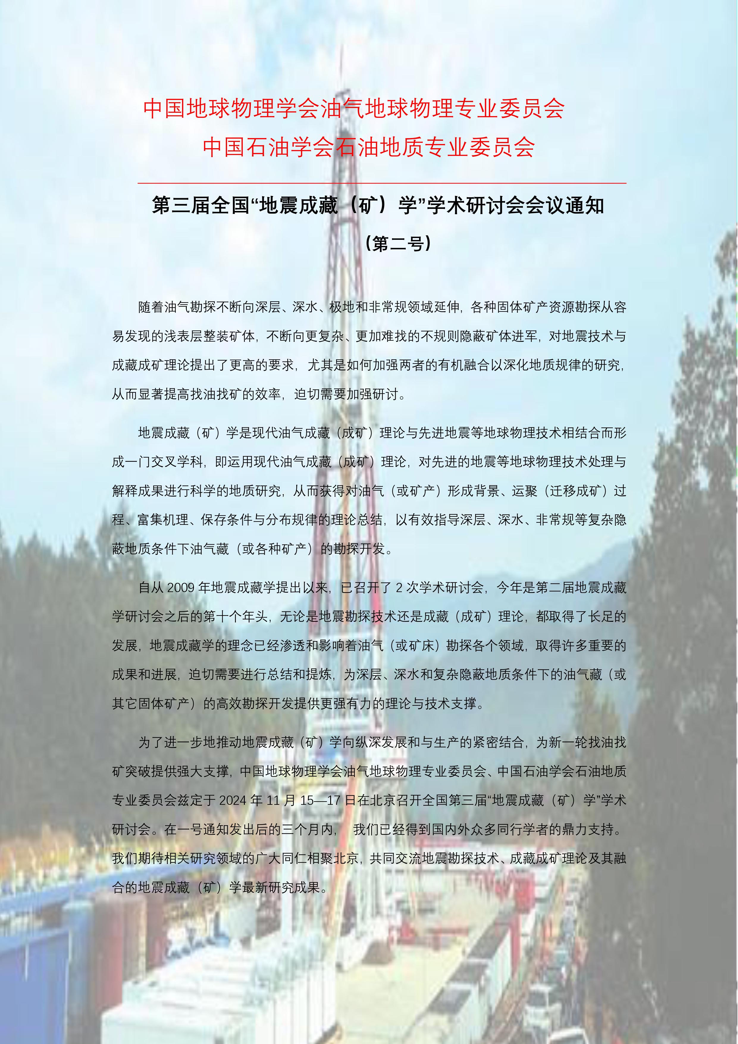 第三届全国“地震成藏(矿)学”学术研讨会会议通知 (第二号)