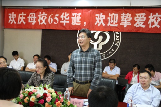 校友谈完感想后,我院周福建教授、罗群教授也和校友进行了交谈,最后非常规油气科学技术研究院党委书记徐樟有进行讲话,他希望同学们无论已经进入社会还是仍在校园内学习都应该保持一颗初心,脚踏实地工作,认认真真做人。座谈会后所有参会人员进行合影留念。而后师生共同在学校餐厅享用午餐。