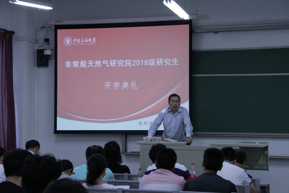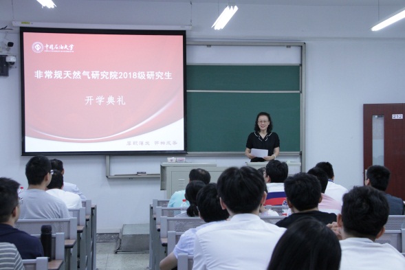 8月29日上午,非常规天然气研究院在二教212举行2018级新生开学典礼。院长宋岩教授,直属党支部书记、副院长姜振学教授,周福建教授等17位研究院教师,以及研究院办公室吴雪飞老师,研究院辅导员戴金明老师共同出席了典礼。典礼由姜振学副院长主持。